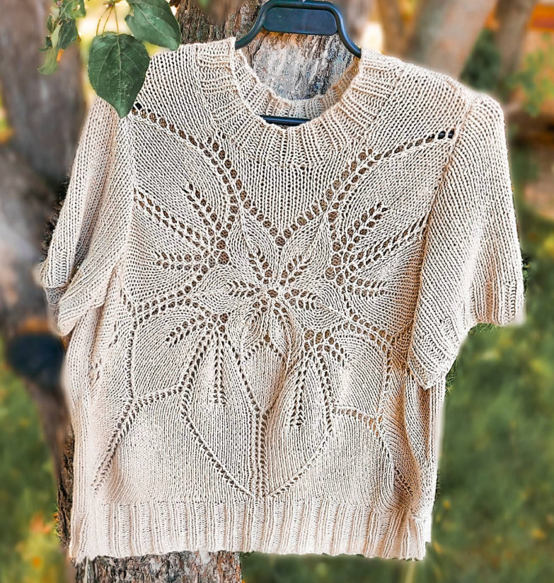 Для вязания этой модели я использовала пряжу Fibra natura papyrus, состав: 78% хлопок, 22% шелк.