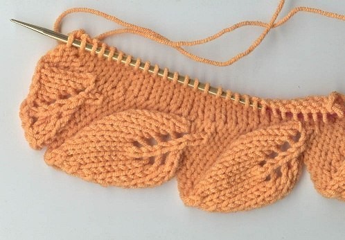 На кайме листья вязать проще, особенно если только начинаешь, если листья в основном полотне - нужно таки иметь определенный опыт вязания, чтобы не напутать с узором.