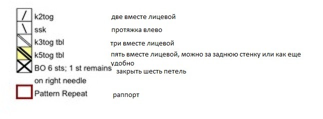 Еще две петли - крайняя левая и крайняя правая в узоре вне раппорта. Эти два элемента схемы добавят еще две петли к нашему набору.
