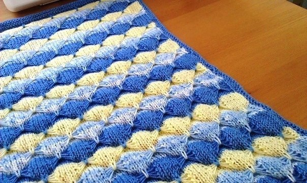 1,3,5-й ряды: 5 петель переснимают, рабочая нить перед узором, 5 лицевых.