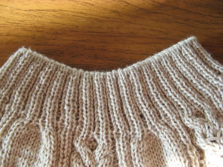 8.После 7 ряда можно пересаживать вязание на чулочные спицы и вязать полотно по кругу (манжеты, горловину, низ изделия).
