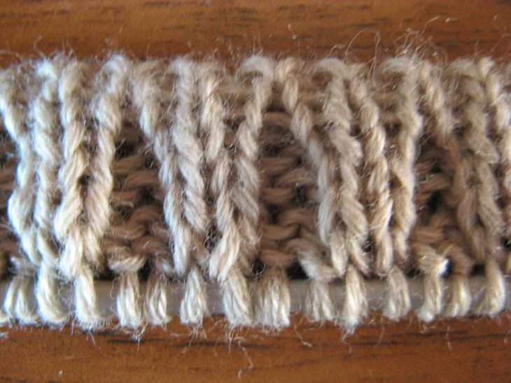 4.Далее повторяем только второй ряд, делая ещё 4 ряда (два в одну сторону, два в другую). Количество рядов может быть больше, меньше – нежелательно: край будет плохо держаться.