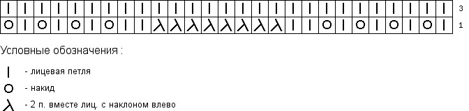 3-й ряд: *(2 вместе лиц.) – 3 раза, (накид, 1 лиц.) – 6 раз, (2 вместе лиц.) – 3 раза, повторять от *