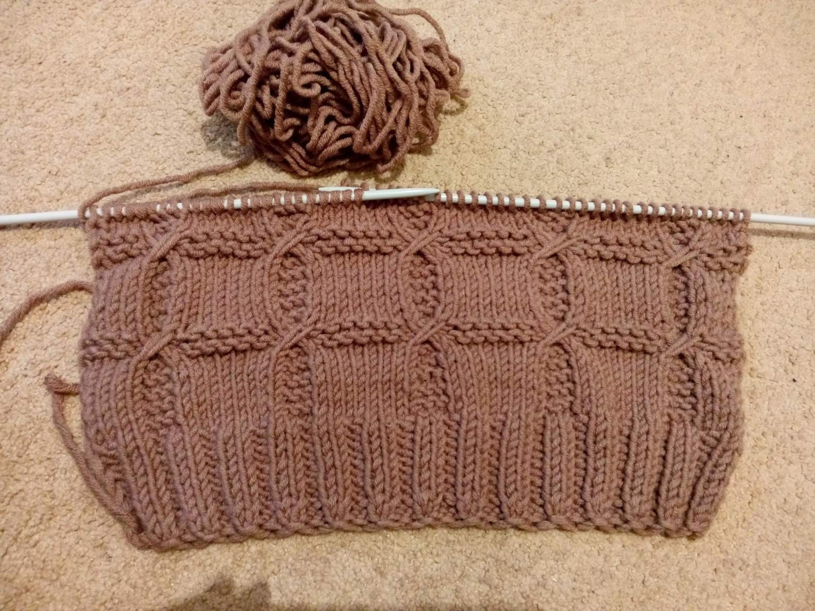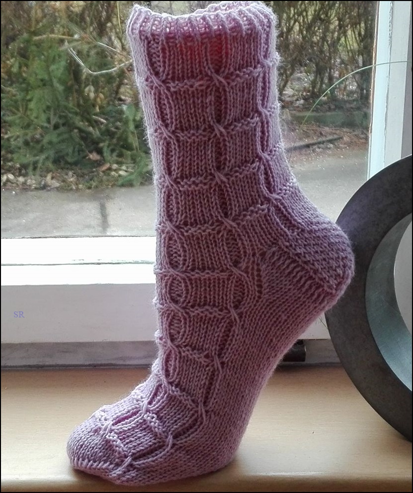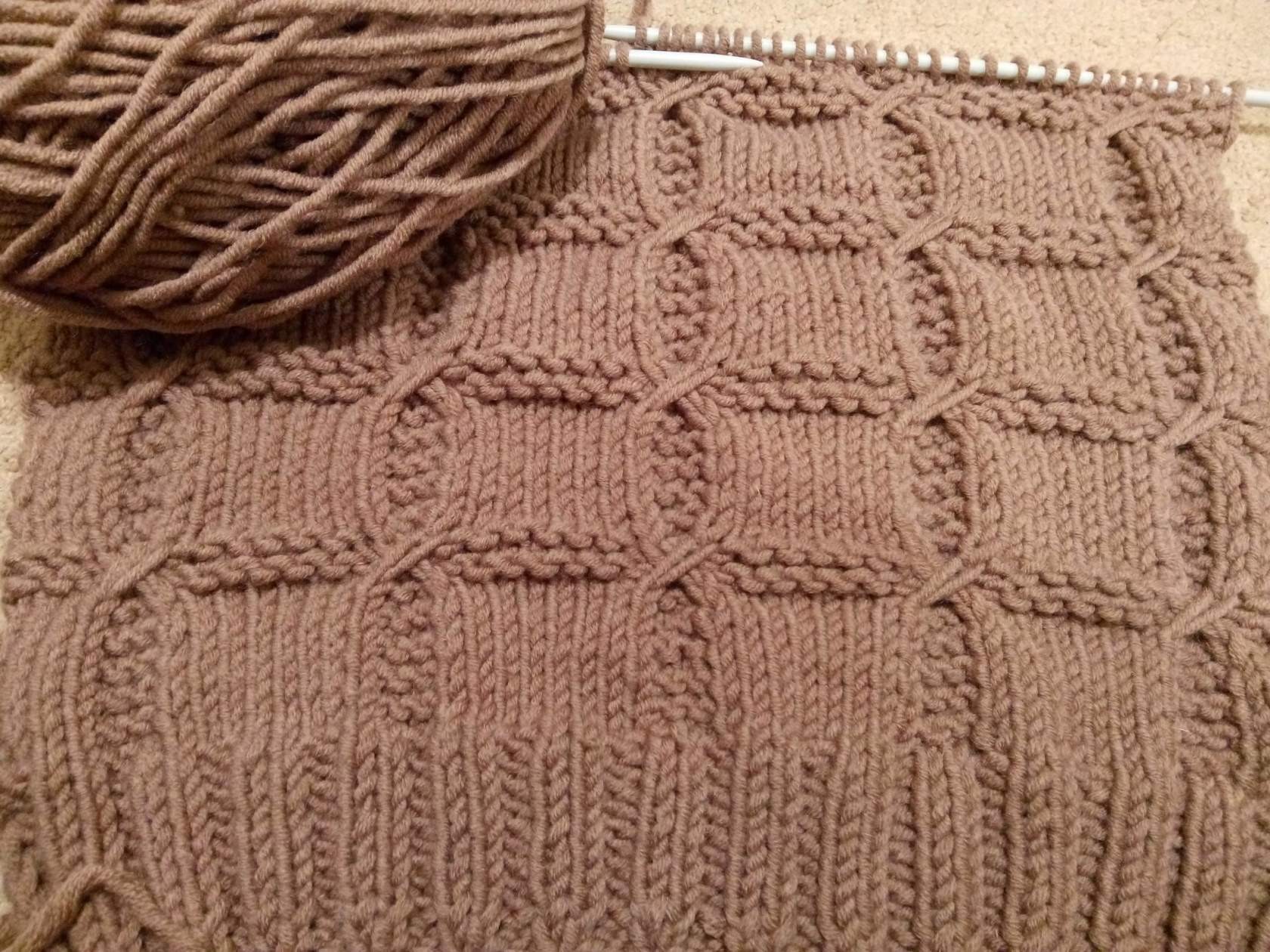 13-й ряд – 7 лиц. п., 1 п. снять перед работой, след. 4-ю п. (= снятая лиц.п.) перед 3 изн. п. провязать лиц.п., 3 изн. п. провязать лицевыми, а затем провязать 1-ю снятую петлю лицевой (пошаговое выполнение перекреста петельниже ), 7 лиц п.
