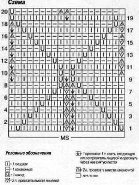 2 петли вместе изнаночной в лицевом ряду, 1 протяжка в изнаночном ряду