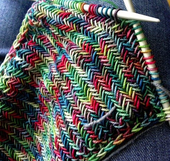 Этот же узор, связанный однотонной пряжей (слева - лицевая сторона, справа - изнаночная).