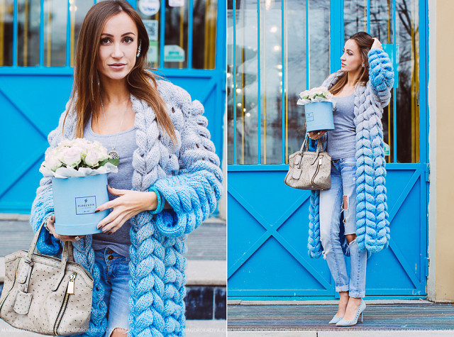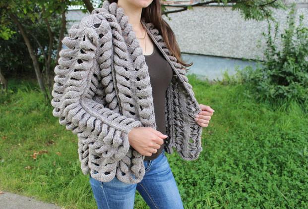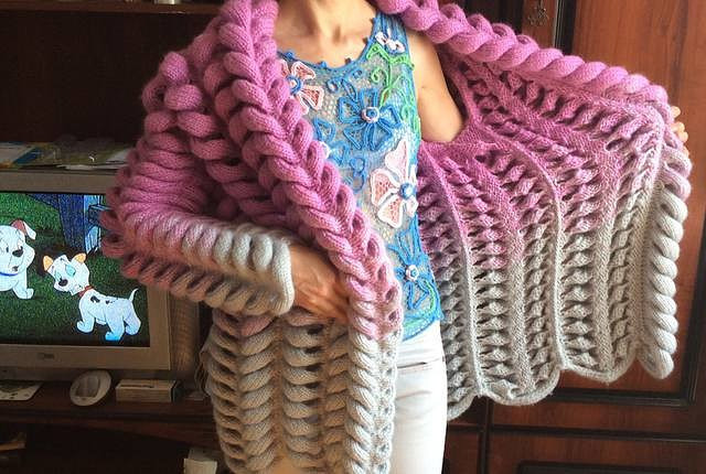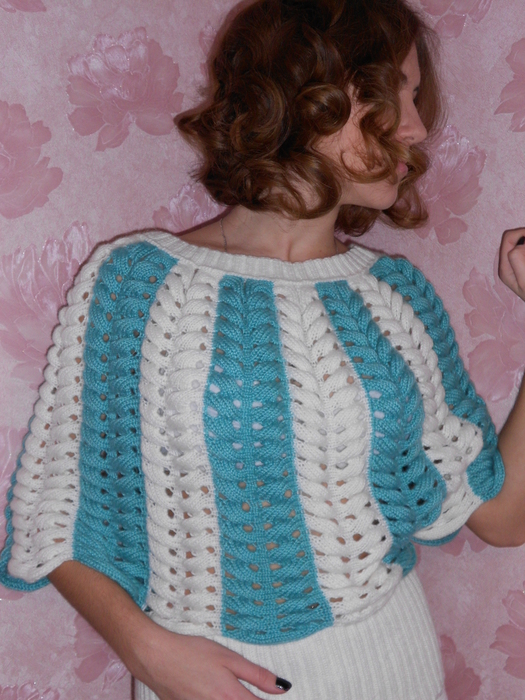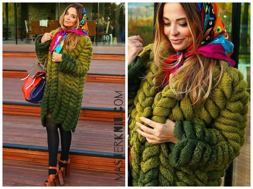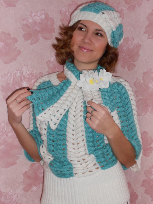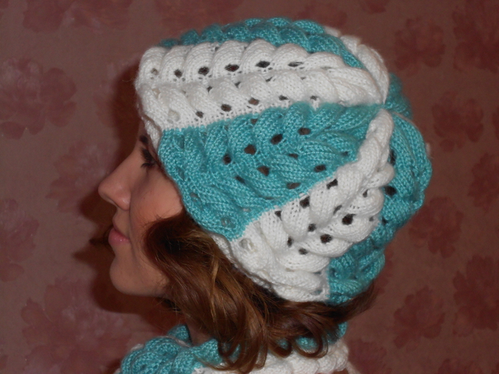 Так вязать по 10 рядов на каждых 6 петлях,взяв 3 п. из уже провязанных и 3 п. из следующих на левой спице.Так до конца ряда.