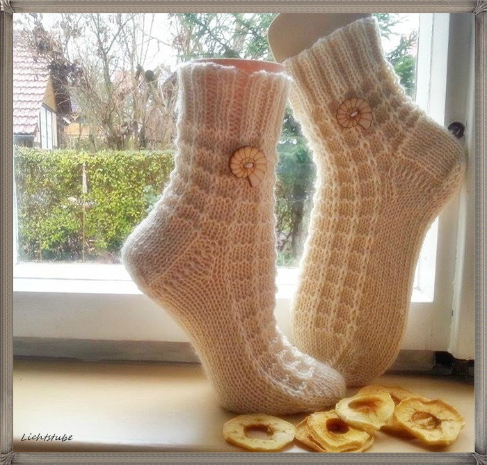 Узор для носков спицамиKlubokhttp://klubok.work/1/89/7293/Klubokhttps://klubok.work/css/image/top-logo-en.pngНоски связаны из пряжи с добавлением мохера (или пуха) 200 г / 100 м спицами № 3,5. Начинаем с резинки 2 х 2 - 15 круговых ряда. Дальше узор носка (повторять с 1 по 5 круговой ряды): 1 к.р. - 1 п. снять как лицевую с накидом, 3 лицевых 2 к.р. - все лицевые 3 к.р. - 1 п. снять как лицевую с накидом, 3 лицевых 4 к.р. - все лицевые 5 к.р. - 1 лицевая, 3 изнаночные. Пятка прямая; мысок ленточный