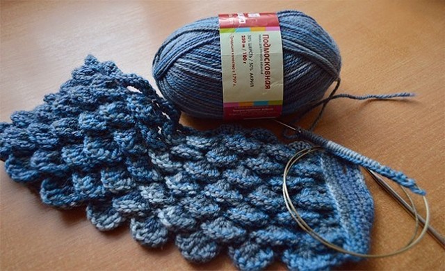 УЗОР «ЧЕШУЯ» Klubokhttp://klubok.work/1/89/7527/Klubokhttps://klubok.work/css/image/top-logo-en.pngВЯЖЕМ НА СПИЦАХ УЗОР «ЧЕШУЯ» В последнее время особую популярность приобрели узоры необычной объемной фактуры. Например, двухслойный узор, имитирующий чешую рыбы или крокодиловую кожу. Такой узор можно применить к любому элементу женского гардероба, от небольших аксессуаров, таких как шапки, митенки, снуды, и продолжая большими формами (свитеры, пальто). В наряде, связанном таким узором, вы всегда будете в центре внимания: необычное полотно, движение и переливы чешуи притягивает взгляды, как магнит. Я предлагаю вам пошаговое описание выполнения этого узора на спицах. Для выполнения мастер-класса возьмем Троицкую пряжу «Подмосковная» (50% шерсть, 50% акрил, 250 м x 100 г) и спицы №4,5. НАБОРНЫЙ И 1-Й РЯДЫ Наберите на спицы кол-во петель кратное 8 + 2 кромочные (обратите внимание: дальше описание дано без учета кромочных петель!) и в 1-м р. все петли провязать изнаночными. РЯД 2 Провязать все петли лицевыми с двумя обвивами, для этого при провязывании каждой петли обвивайте спицу рабочей нитью 2 раза. РЯД 3 Все петли вязать лицевыми; обвитую вокруг спицы нить просто сбрасывать при вязании петель — так петли становятся вытянутыми. РЯД 4 Провязывать * 7 петель вместе изнаночной, затем из одной петли вывязать 7 лицевых (попеременно 1 лицевая, 1 накид)*. Повторять от * до * до конца ряда. РЯД 5 Все петли вязать изнаночными. РЯД 6 Вязать, как 2-й ряд = все петли выполнять лицевыми с двумя обвивами. РЯД 7 Вязать, как 3-й ряд = петли вязать лицевыми, накиды сбрасывать. РЯД 8 Вязать, как 4-й ряд, но в обратном порядке, т. е. сначала из одной петли вывязать 7 лицевых (попеременно 1 лиц., 1 накид), затем 7 петель провязать вместе изнаночной, повторять таким образом узор до конца ряда. В результате «чешуйки» будут располагаться в шахматном порядке. Повторять узор с 1-го по 8-й ряды. Так выглядит узор с изнаночной стороны. В зависимости от выбранной вами пряжи узор «чешуя» будет выглядеть более ажурным или более плотным, но всегда — декоративным и сохраняющим тепло!