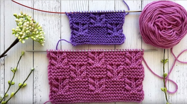 Узор гиацинт на платочной вязке. Для вязания по кругу вам необходимо набрать кол-во петель кратное 14. 1 ряд: *2 лиц, из 1 -3 лиц., 1 лиц, из 1-3 лиц, 2 лиц, 7 изн, * 2 ряд: *2 лиц, 7 снять нить за работой, 2 лиц, 7 лиц. * 3 ряд: *2 п. оставить за работой, провязать 3 вм. лиц., 2 лиц. со всп. спицы, 1 лиц, 3п. оставить перед работой, 2 лиц, 3п. со всп. сп. провязать вместе лиц., 7изн, * 4 ряд: *5лиц, 1 петлю снять нить за работой, 5лиц, 7 лиц, * 5 ряд: *2 лиц, из 1 -3 лиц., 1 лиц, из 1-3 лиц, 2 лиц, 7 изн, * 6 ряд: *2 лиц, 7 снять нить за работой, 2 лиц, 7 лиц. * 7 ряд: *2 п. оставить за работой, провязать 3 вм. лиц., 2 лиц. со всп. спицы, 1 лиц, 3п. оставить перед работой, 2 лиц, 3п. со всп. сп. провязать вместе лиц., 7изн, * 8 ряд: *5лиц, 1 петлю снять нить за работой, 5лиц, 7 лиц, * 9 ряд: *7 изн, 2 лиц., из 1 -3 лц., 1 лиц, из 1-3 лиц, 2 лиц, * 10 ряд: *7 лиц, 2 лиц, 7 снять нить за работой, 2 лиц, * 11 ряд: *7 изн, 2 п. оставить за работой, провязать 3 вм. лиц., 2 лиц. со всп. спицы, 1 лиц, 3п. оставить перед работой, 2 лиц, 3п. со всп. сп. провязать вместе лиц. * 12 ряд: *7 лиц, 5 лиц, 1 петлю снять нить за работой, 5 лиц. * 13 ряд: *7 изн, 2 лиц., из 1 -3 лц., 1 лиц, из 1-3 лиц, 2 лиц, * 14 ряд: *7 лиц, 2 лиц, 7 снять нить за работой, 2 лиц, * 15 ряд: *7 изн, 2 п. оставить за работой, провязать 3 вм. лиц., 2 лиц. со всп. спицы, 1 лиц, 3п. оставить перед работой, 2 лиц, 3п. со всп. сп. провязать вместе лиц. * 16 ряд: *7 лиц, 5 лиц, 1 петлю снять нить за работой, 5 лиц. * Далее продолжаем вязать, повторяя с 1 по 16 ряд раппорта