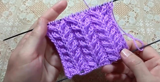 перекрестить 5 петель с наклоном в право.1 лиц. перекрестить 5 петель м наклоном в лево.*-2 изн* 4 ряд-2 лиц.3 изн.1 снять нить перед работой.3 изн.*-2 лиц.*