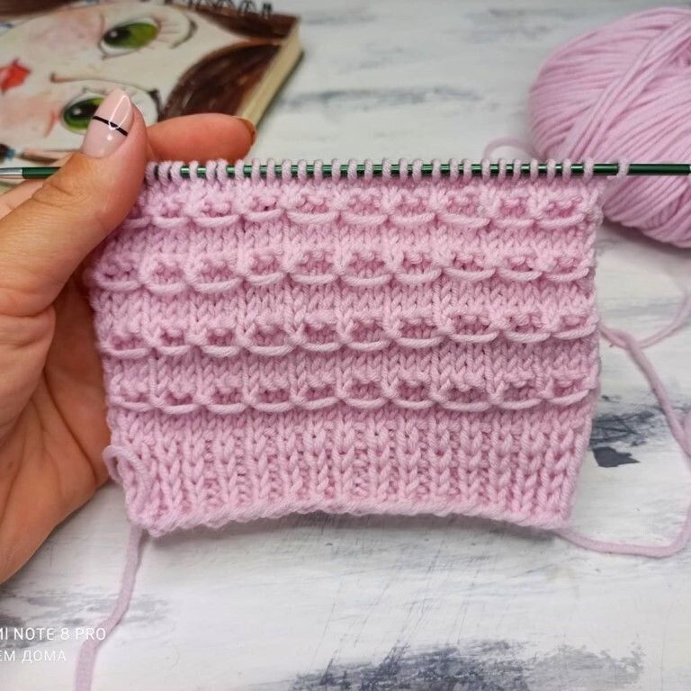3 ряд: кр.п., * лицевые петли*, кр.п. 4 ряд: кр.п., * изнаночные петли*, кр.п.