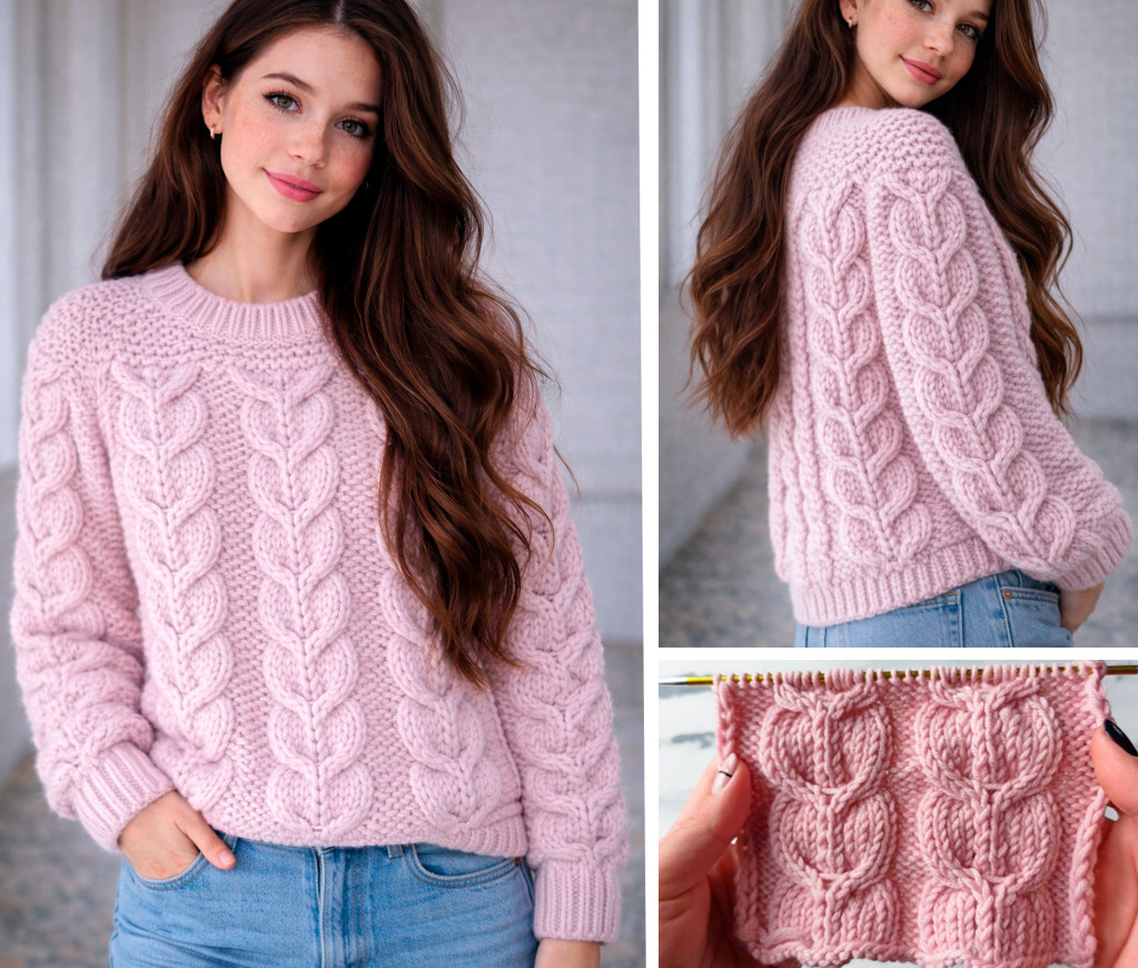 Можно связать полностью этим узором все изделие, а можно пустить одну косу, например на полочках или рукавах джемпера.