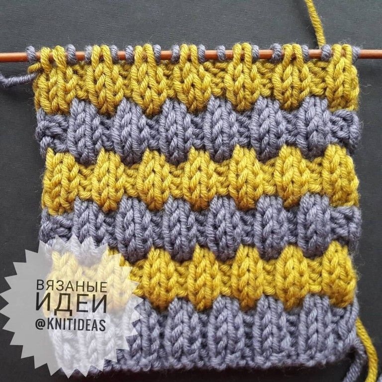 В этом узоре используются снятые петли, которые создают некоторый объем. Смена нити будет происходить через каждые 6 рядов. Раппорт узора 4 петли и 12 рядов.