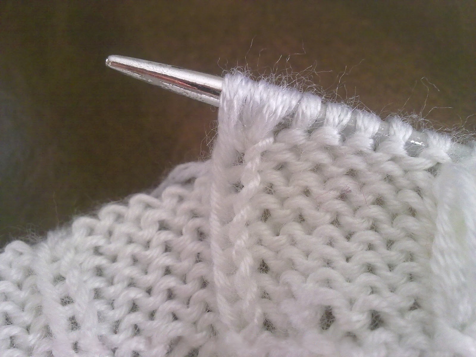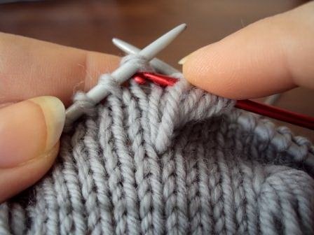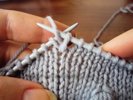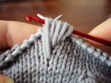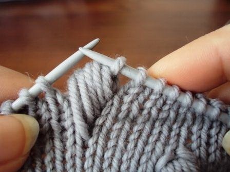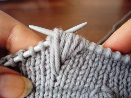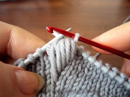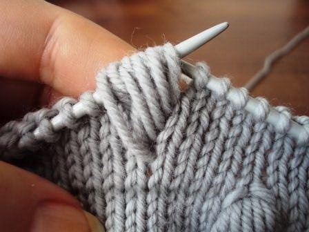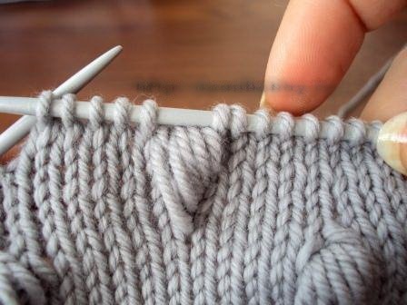Довязав до места вывязывания шишечки, введите спицу в петлю на ряд ниже.