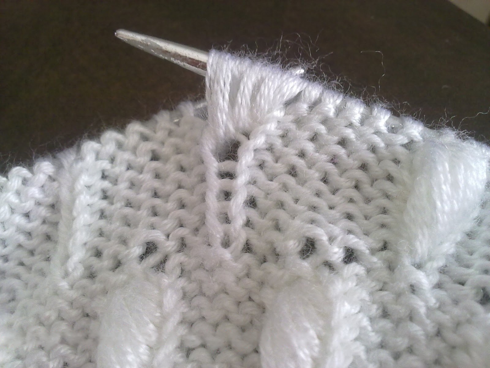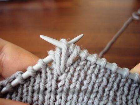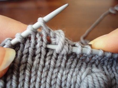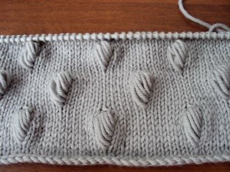 Далее вяжите ряд лицевыми петлями до следующего места вязания шишечки.