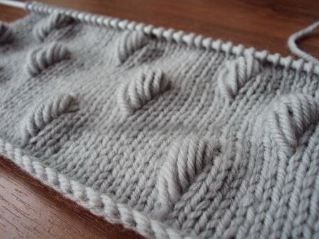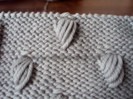 Красивые шишечки вяжутся спицами достаточно просто. Каждая шишечка формируется из вытянутых петель предыдущих рядов вязаного полотна. Такой декоративный элемент вязания украсит любой узор. Даже если вязать такие шишечки на лицевой глади в шахматном порядке получится интересный узор.