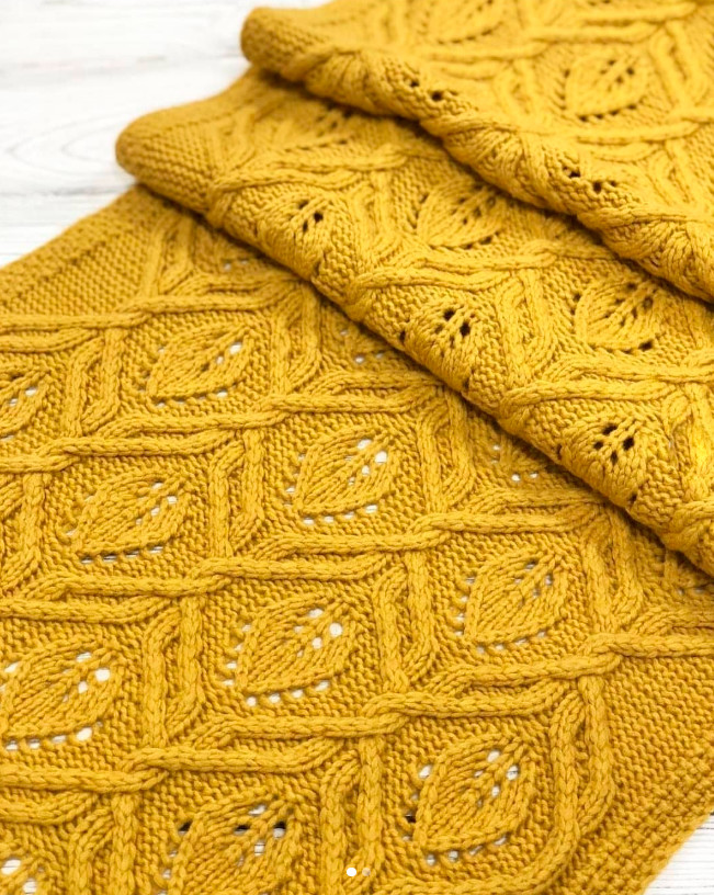 This pattern with buds can be used to knit a stylish sweater, hat, or bag.
