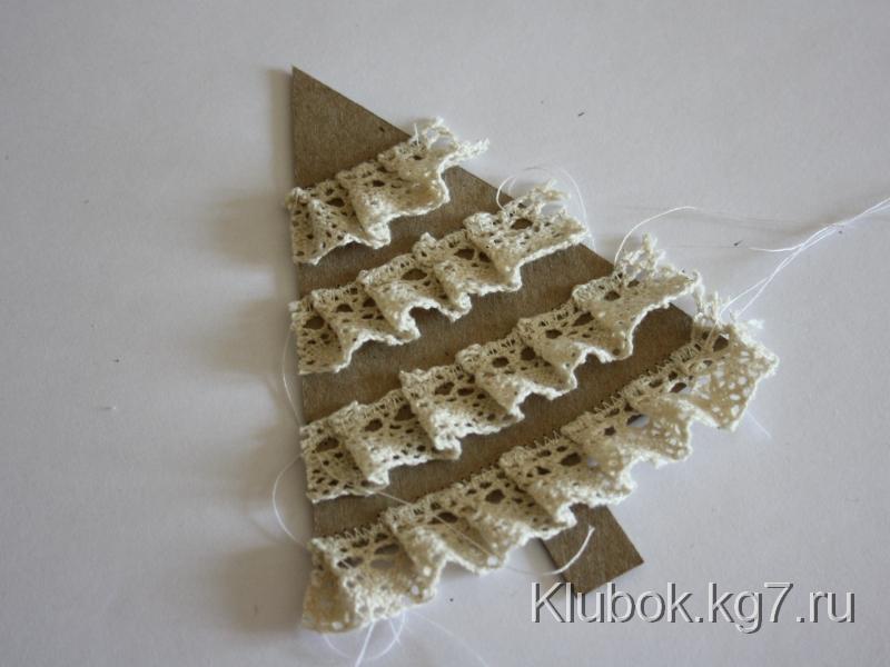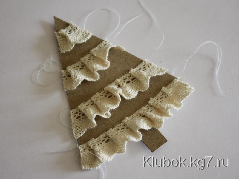 Варианты этой же ёлочки: вместо бумажного кружева можно использовать любые ленты, пришитые так же, как кружево; либо декоративные ленты с розочками.