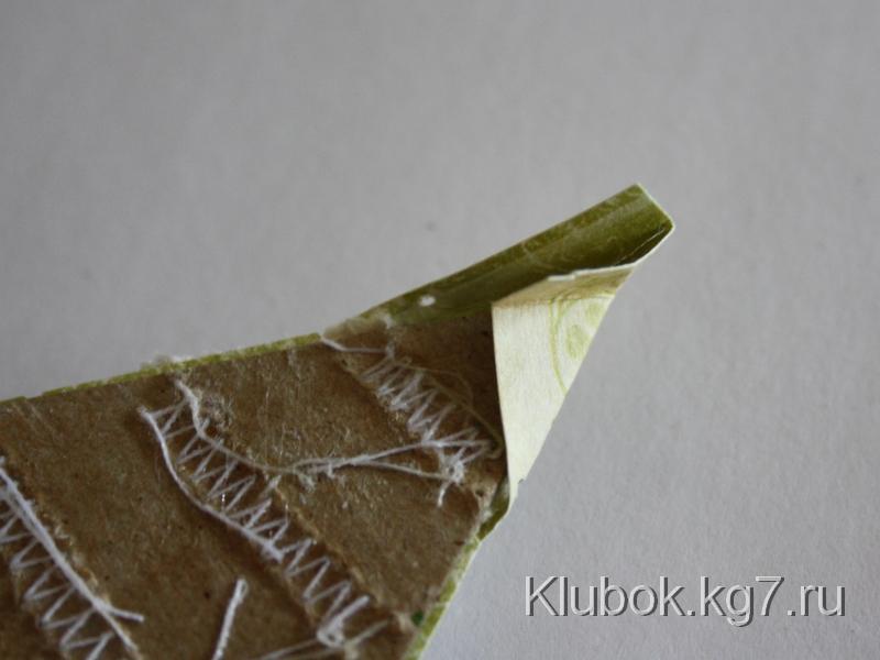 Для начала вырежем из плотного картона заготовки для будущих ёлочек (мои ёлочки 12 см в высоту и 9 - в ширину). Я использую для этого крафт-картон - он достаточно плотный, чтобы выдержать самые разнообразные манипуляции, и к тому же приятный на вид.