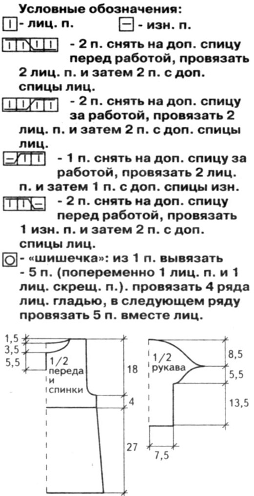 Плотность вязания: 25 п. х 37 рядов лиц. гладью = 10 х 10 см.
