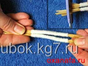 витком лыко вместе с концом нити. Так происходит закрепление, и нить не