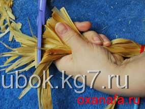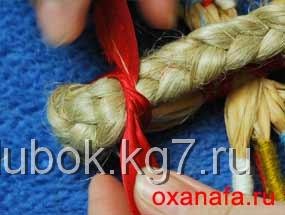 посередине и плетем обычную косичку из трех частей вдоль лыкового пучка.