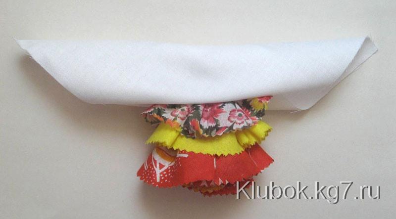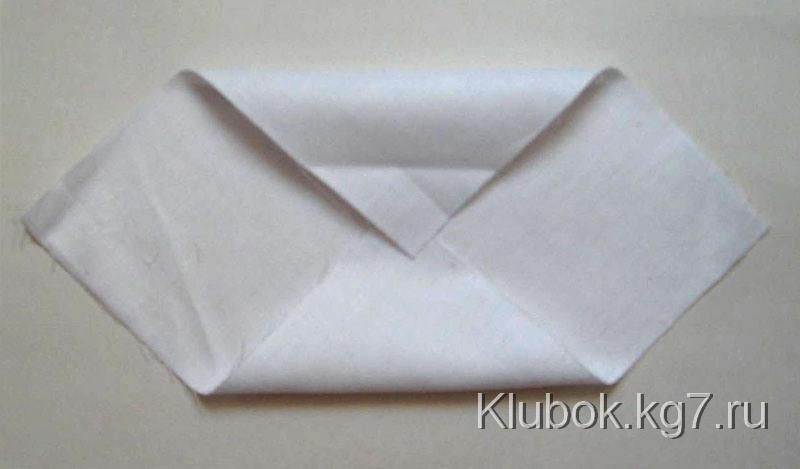6 Белый лоскут для лица складываем противоположными углами к центру.