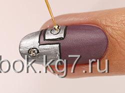лаковое покрытие кистью для дизайна нанесите лак серебряного оттенка. Должны