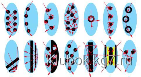 Тут показаны точки которые нужно поставить лаком, а стрелочками - это движение зубочисткой (иголкой)