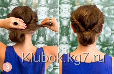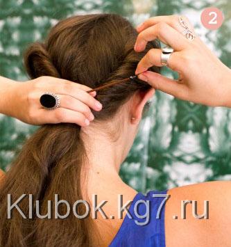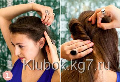 как и в первой прическе, собрав волосы в валик-жгутик с одной стороны. Доводите