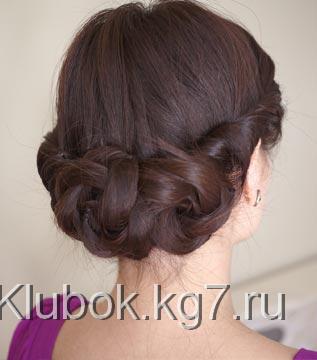 Чтобы создать сзади пучок-цветок, нужно закрутить один, а затем и второй получившийся жгутик колечком (по кругу). Зафиксируйте их невидимками.