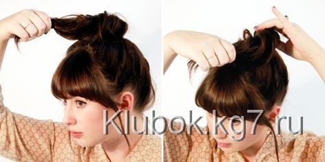 5. Разделите челку, а длинные прядки по бокам челки заправьте за уши (если она у вас есть). Сбрызните гульку для волос лаком. Вуаля! Прическа готова!
