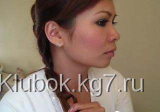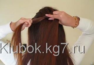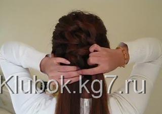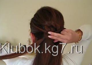 Получившуюся косичку завязываем резинкой на конце, поднимаем и делаем из нее