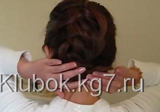 Нам нужно сделать несколько таких узелков ниже первого. В каждый из узлов добавлять по две новых прядки с боков головы. Это похоже на плетение колоска, только здесь – получаются узелки.