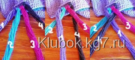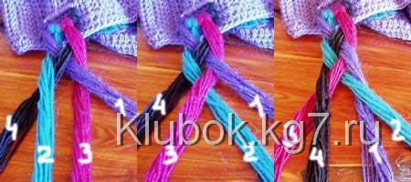 перенесите над второй, третюю над четвертой. Затем чертвертую прядь над
