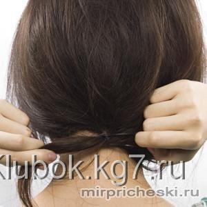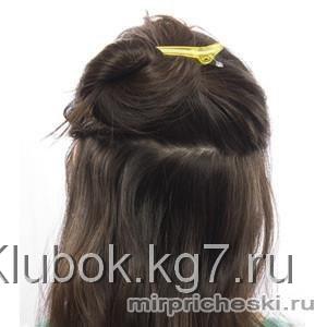 Слегка подчёсываем верхнюю часть волос , опускаем их, накрывая нижние скрученные