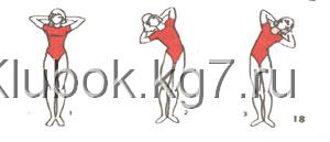 положите за голову, локти вытянуты вверх. Теперь начинайте поворачивать