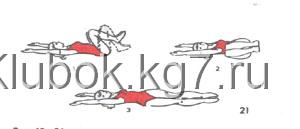 груди, повернуть в сторону таз и согнутые в коленях ноги, вытянуть ноги