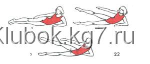 по-прежнему оставались на весу, затем вновь подтяните колени к груди и