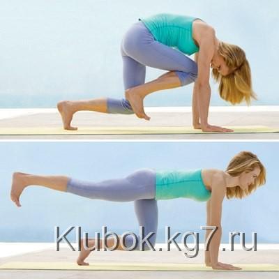 защитить спину. Сделайте 8 раз, затем поменяйте ноги и
