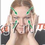 задерживая их безымянными пальцами, а большими и указательными стяните кожу лба