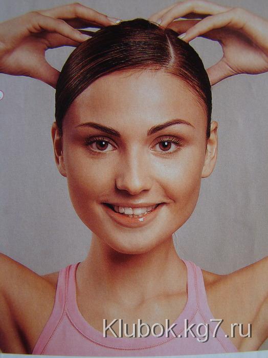 Это упражнение помогает активизировать на голове очень важную область, т.н. венечную звезду. Здесь пересекаются сразу несколько мышц головы, связанных с мышцами лица.