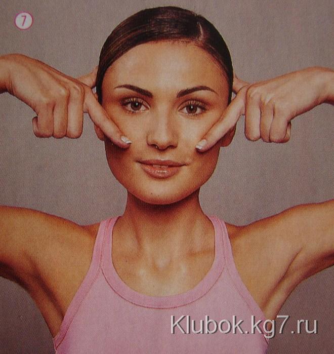 Упражнение придает всему лицу новое натяжение, разглаживает щеки и подбородок, поднимает уголки губ.