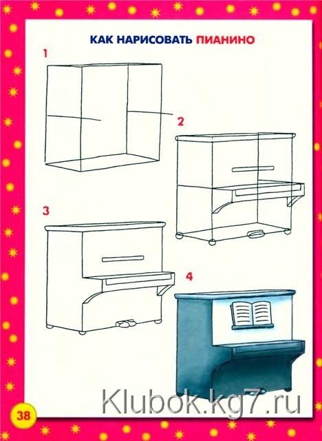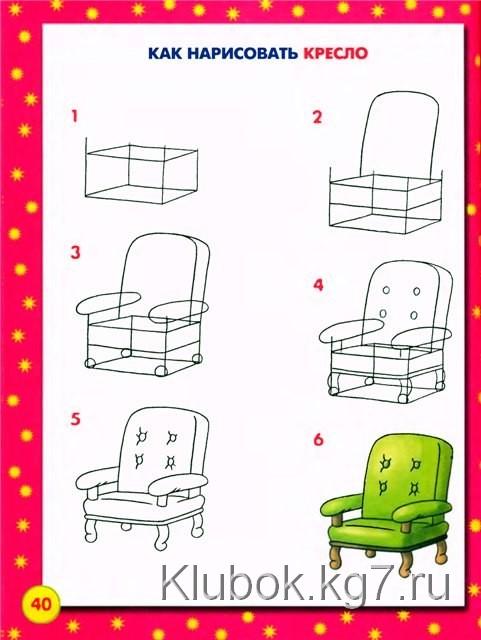 Урок рисования для детей, рисуем наш дом - стол, кровать, кресло