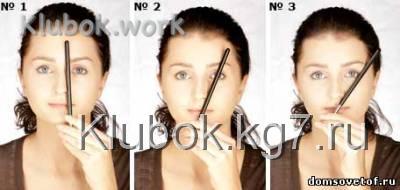 Понятно, что стихийно выщипывать все волоски подряд мы не будем. Хочется создать красивую и правильную форму бровей. В формировании идеальной формы брови важно соблюдать закон трех условных линий, которые помогут вам определить, где должна ваша бровь начинаться, оканчиваться и иметь точку максимального изгиба. Для определения этих важных точек используйте карандаш. Карандаш нужно приложить к лицу таким образом, чтобы он проходил через все нужные нам точки, а потом обязательно отметьте точки пересечения карандаша с линией вашей брови.