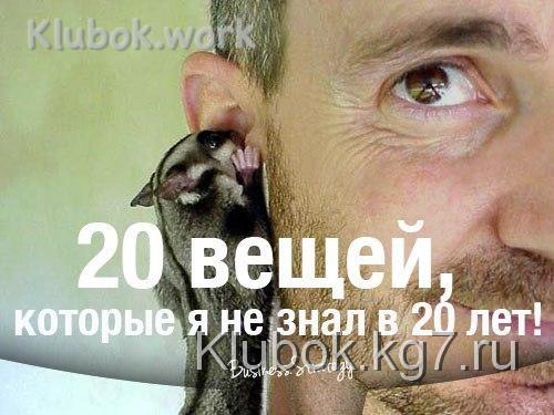 20 вещей, которые я не знал в 20 лет.Klubokhttp://klubok.work/14/97/3041/Klubokhttps://klubok.work/css/image/top-logo-en.pngЧем вы тупее, тем вам проще продать продукты и услуги. Размер диагонали телевизора обратно пропорционален коэффициенту интеллекта.