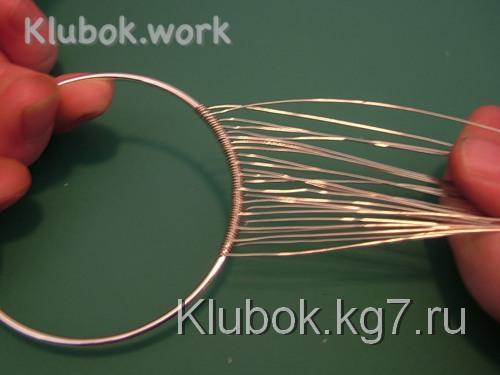 Вам понадобится – металлическое кольцо, проволока для бисера, бусины или самоцветы. Все это можно купить в магазине фурнитуры для шитья и товаров для рукоделия – кольца продаются для изготовления ручек в отделе фурнитуры, а остальное в отделе рукоделия. Тут были использованы бусины и бисер сине-голубого оттенка.