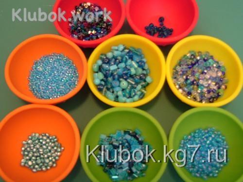 рукоделия. Тут были использованы бусины и бисер сине-голубого оттенка.