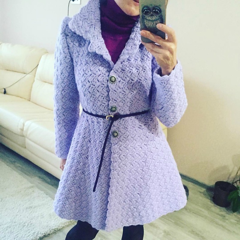 Вяжем пальто крючком, при этом ни узор, ни цвет, не важны, важно соблюсти покрой, стиль и посадку изделия.